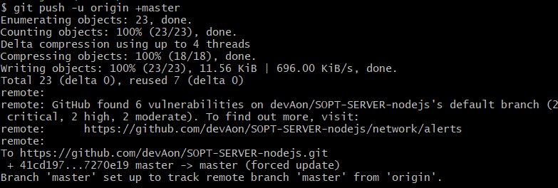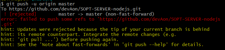 error: failed to push some refs to 'https://github.com/devAon/SOPT-SERVER-nodejs.git'