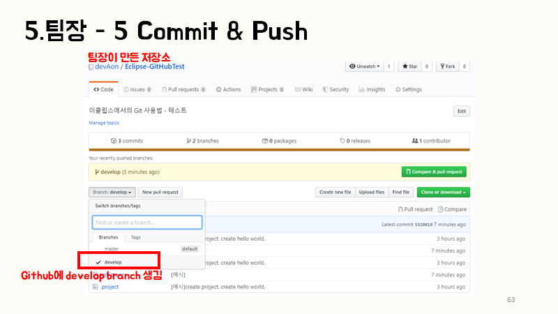 [Git ppt 자료 2] Branch란? Git Flow란?[Git ppt 자료 4] 이클립스에서 Git Flow전략을 적용한 협업방법 (master-develop-feature)