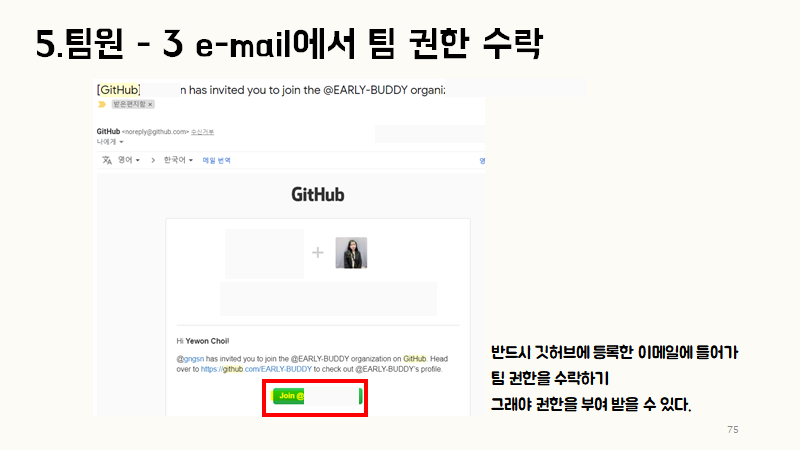 05 팀원 3. github에 입력해둔 본인의 email에서 팀 권한 수락