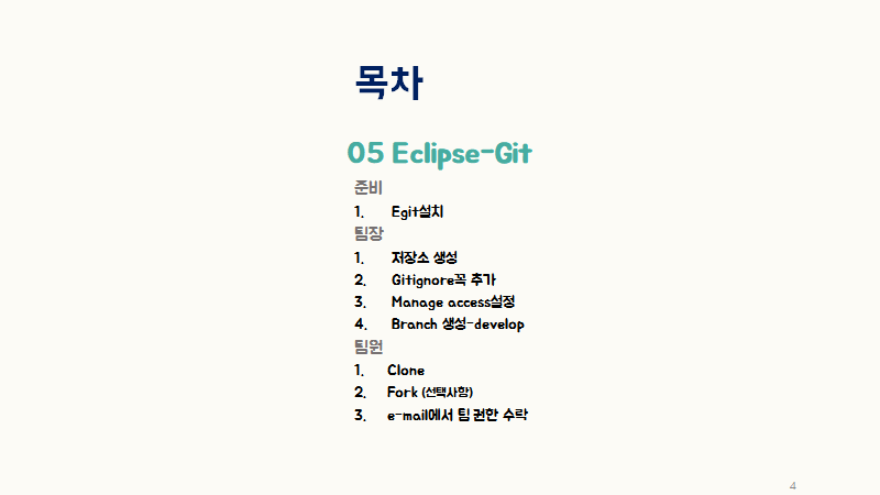 [Git ppt 자료 3] 이클립스에서 Git 연동, 사용법, 팀장과 팀원의 협업방법까지 총정리Git 2020. 2. 27. 04:56