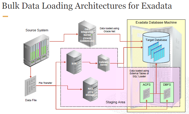 위치설명ACFS / DBFS (Exadata 내부) Exadata의 파일 시스템에 staging 가능 NAS / SAN (외부) 별도의 스토리지에 staging 후 Exadata에서 접근 외장 디스크 / 테이프 등 물리적 매체로 전송 후 적재 ⚠️ 주의: Exadata 내부 서버 디스크(로컬 HDD)에 staging 파일을 두는 건 권장되지 않습니다.