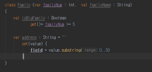 => nonNullable. 즉, 초기화 해줘야 한다. val address : String = null